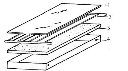 Isolamento térmico:comumente uma camada de lã de vidro colocada no fundo e nas laterais do coletor a fim de reduzir ao máximo as perdas de calor
