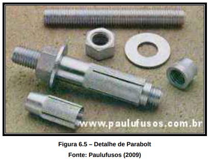 Para a coluna B3 ser posicionada, é fixo conforme os eixos constantes no projeto executivo, dois perfis na fachada por intermédio de buchas expansíveis chamadas de parabolts, Figura 6.5, que tem a finalidade de alinhar qualquer desaprumo que possa existir na estrutura.
