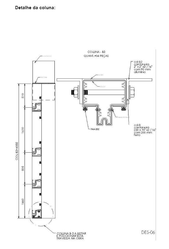 Para seguir uma sequência de execução, como exemplo a coluna B3 em seu detalhe conforme projeto no Anexo E, e Anexo F.