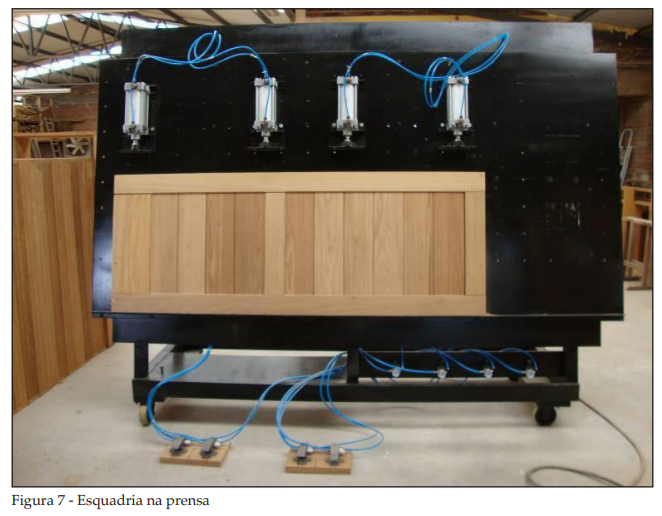 Antes de o equipamento estar funcionando, as esquadrias eram prensadas sem um controle tecnológico mais rigoroso. As peças eram montadas e a quantidade de força não podia ser medida, pois o processo era artesanal (uso de sargentos). Portanto, buscou-se uma solução que viesse melhorar o processo de produção, com baixo custo em comparação à compra de uma máquina pronta. A máquina foi montada na própria empresa, com o auxílio de técnicos da área mecânica.
