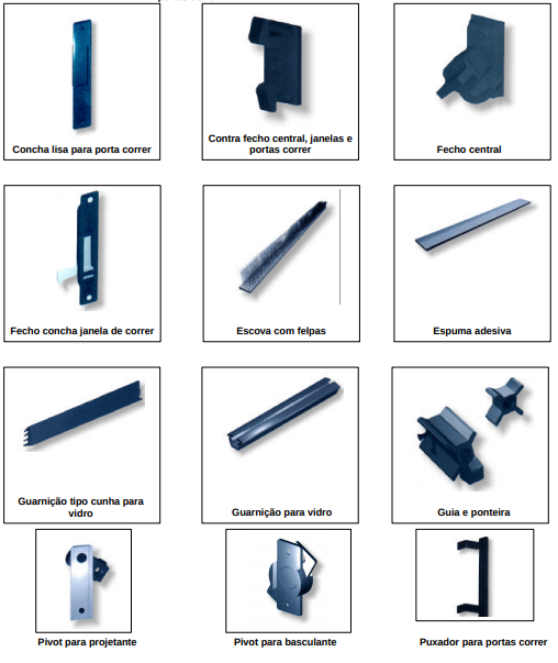 5 Ferragens e acessórios para esquadrias de alumínio.