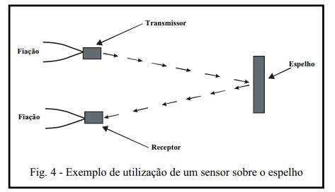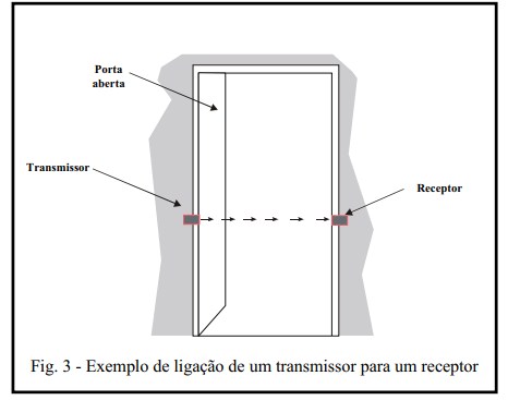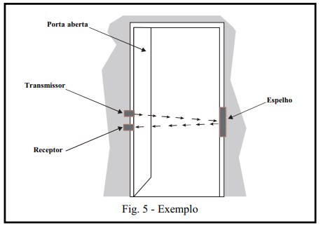 Se alguém passar pela porta interromperá o feixe. Alguns transmissores e receptores já são vendidos juntos, no mesmo corpo, mais o espelho. Recebem o nome de ótica alinhada por reflexão.